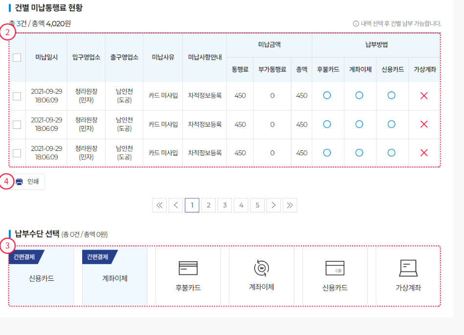 - 주의사항: 당일 발생한 미납 통행료는 시스템 반영에 시간이 걸리므로, 1~2일 후에 다시 조회해야 정확한 내역을 확인할 수 있습니다.