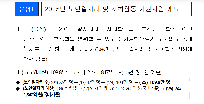 2025년부터 노인일자리 및 사회활동 지원사업이 역대 최대 규모로 운영됩니다.