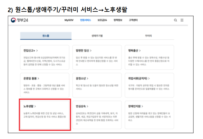 - 이어서 ‘노후생활 서비스’를 선택합니다.
