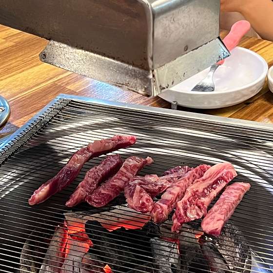 직판장에서 구매한 고기를 즉석에서 구워 먹을 수 있는 메뉴로, 채끝살, 등심, 갈비살 등 다양한 부위를 즐길 수 있습니다.