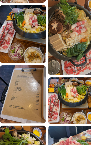 - "솜사탕 스키야키는 비주얼도 좋지만 국물이 진하고 달콤해서 정말 맛있었어요. 마무리로 먹는 우동사리도 완벽했어요!"