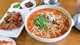 - 장칼국수와 함께 명태강정을 세트로 즐기면 완벽한 식사.
