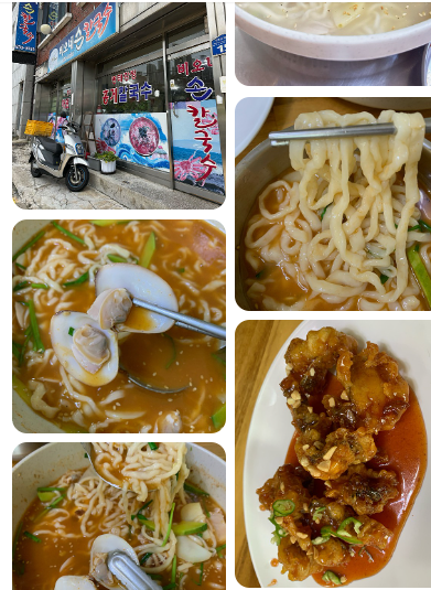 - 해물칼국수: 다양한 해산물이 들어간 시원한 국물.