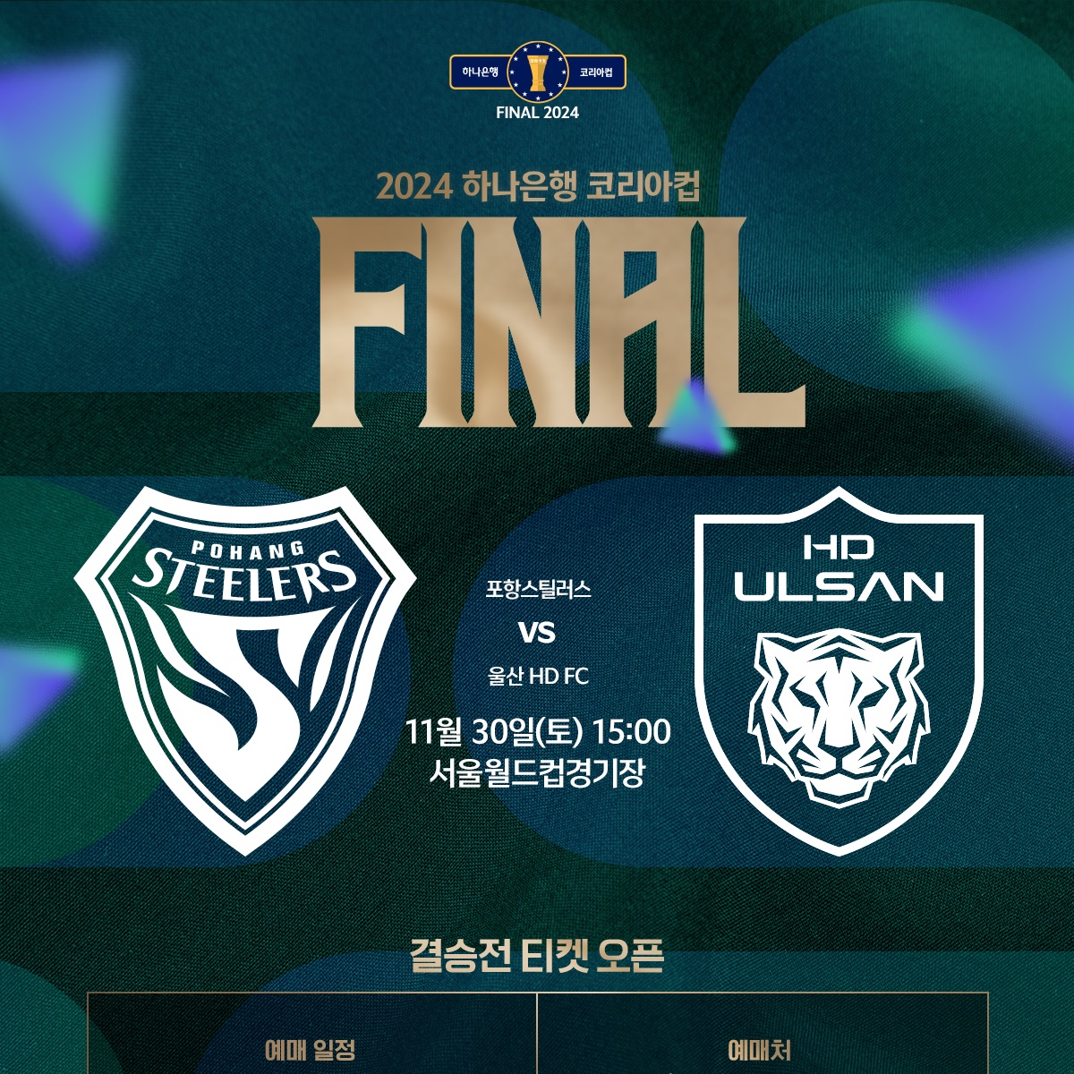 한국 축구 팬들의 뜨거운 관심을 받고 있는 2024 하나은행 코리아컵 결승전이 오는 11월 30일 서울월드컵경기장에서 펼쳐집니다.