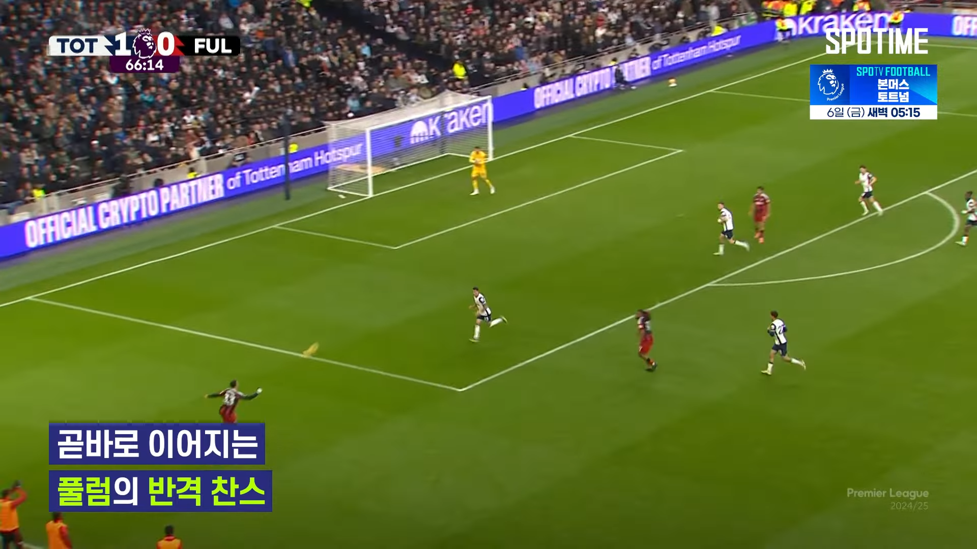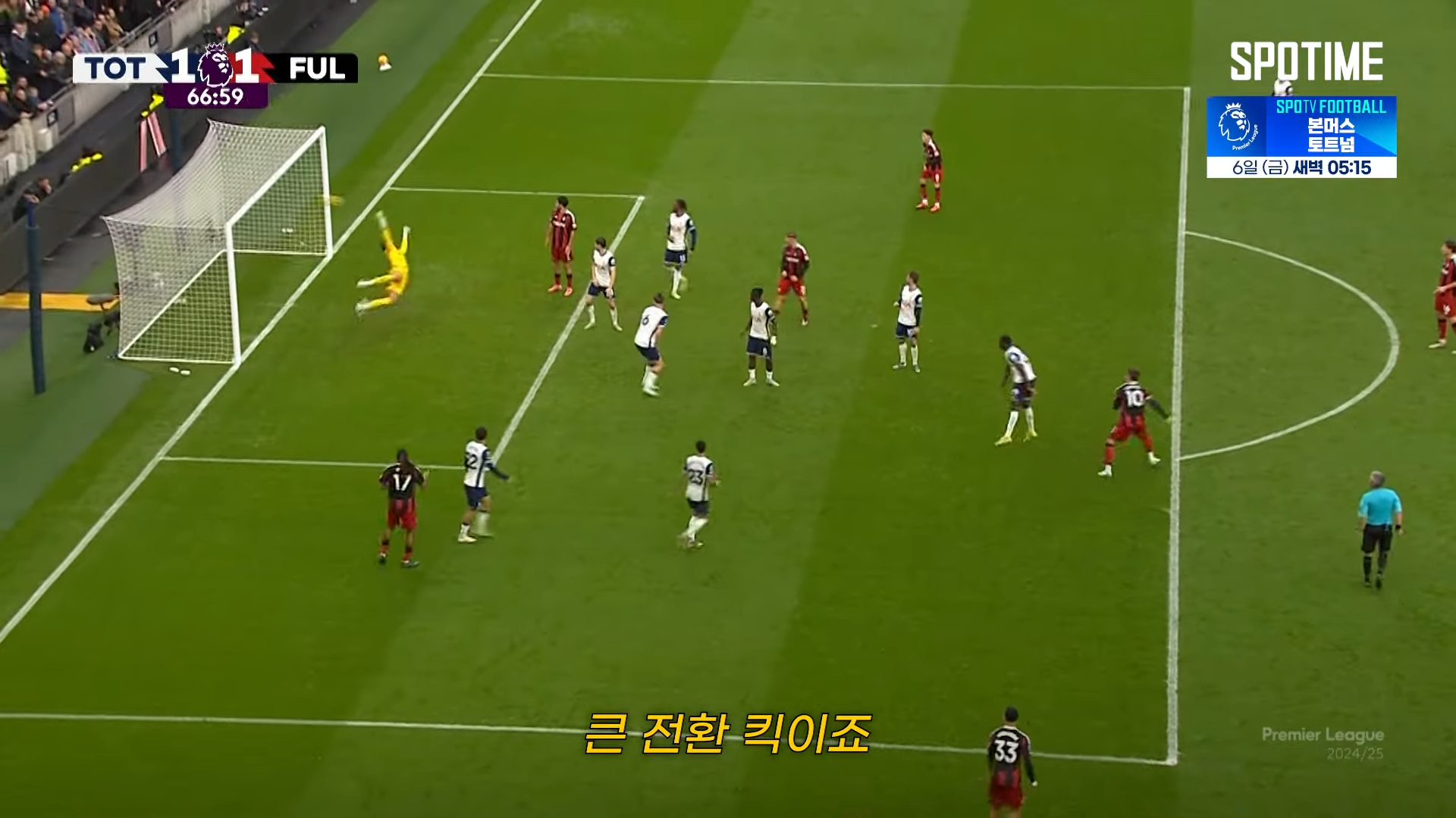- 점유율: 토트넘이 더 높은 점유율을 기록했지만, 풀럼의 효율적인 공격이 돋보였습니다.