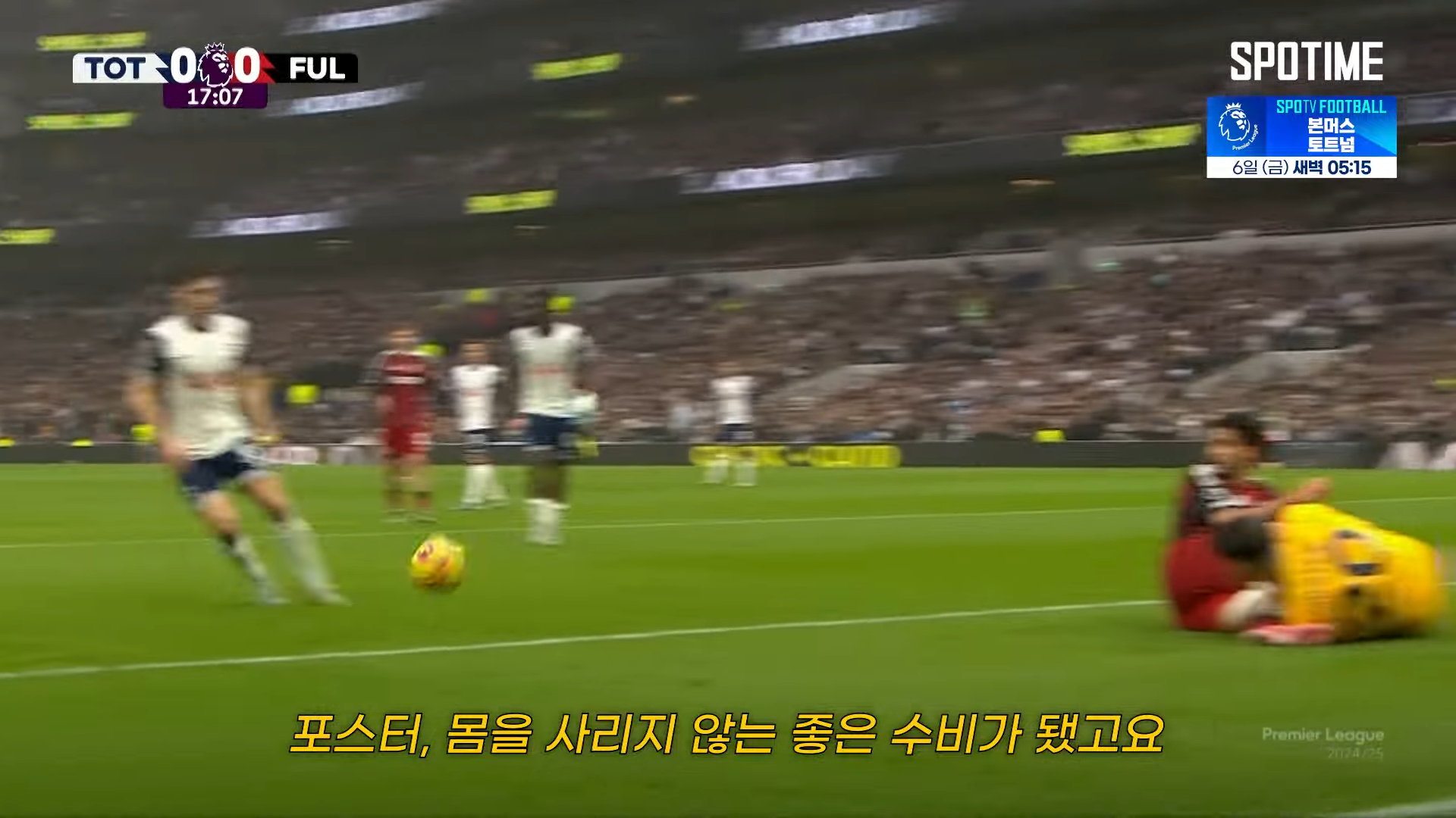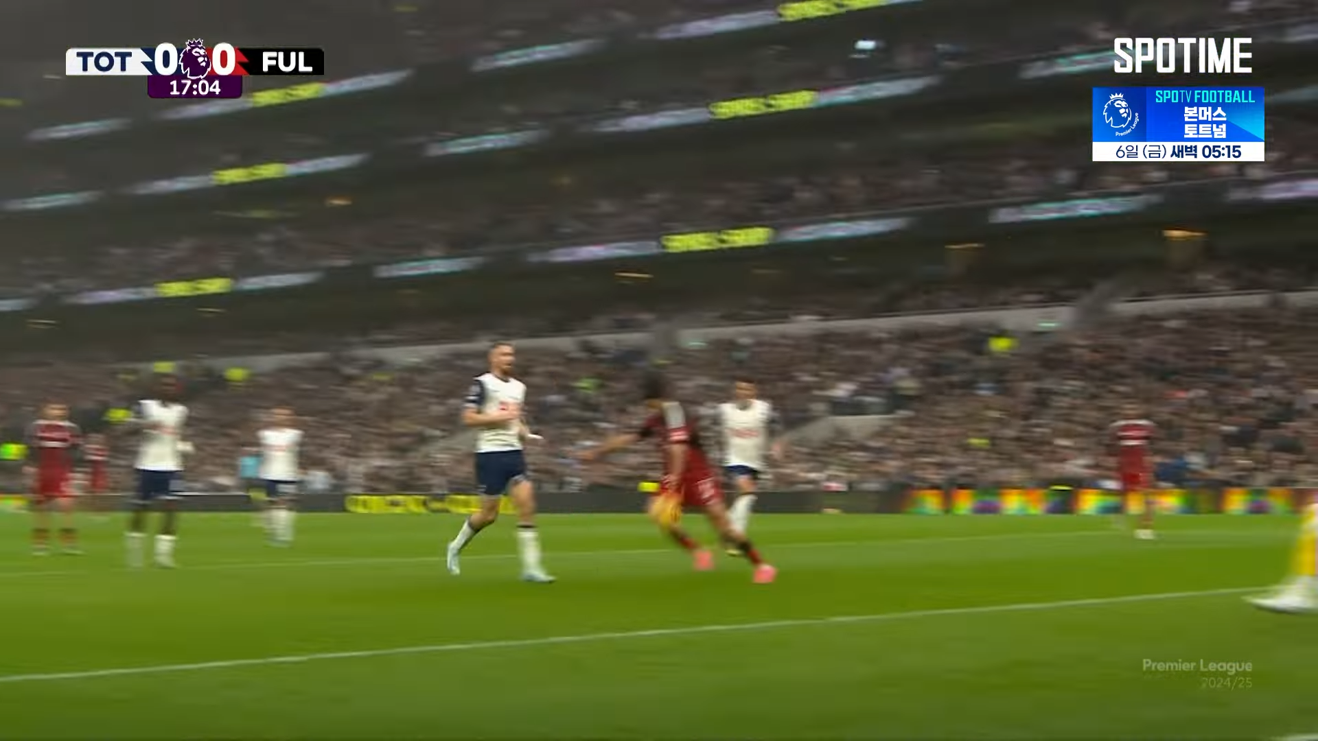 전반 17분, 토트넘은 빠른 패스를 활용해 풀럼의 수비 라인을 흔들었고, 골키퍼의 실수를 틈타 동점골을 만들어냈습니다. 하지만 이후 결정적인 득점 기회를 살리지 못하며 추가 득점 없이 경기를 이어갔습니다.