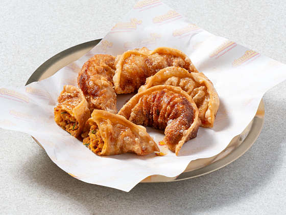 - 매콤한 김치가 가득 들어간 수제 만두.